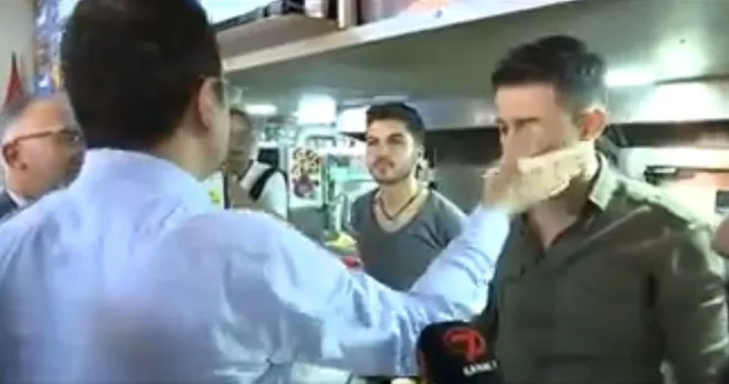Keskin, "Konuşmanın bir bölümünde elini göğsüme vurup sözde bana ders veriyor. Sonra da sağ eliyle yanağıma dokunuyor. Sosyal medyada, 'tokatladı' diye bazı görüntü ve ifadeler görüyorum. Bana kimse tokat atamaz. Atmaya kalkanlara da gereken cevabı anladığı dilden veririz. Böyle bir göreve soyunmuşsanız. Taraflı tarafsız herkesin söylediklerini olgunlukla dinleyeceksiniz. İmamoğlu'nun gerçek yüzü bu diyalogla ortaya çıkmıştı. Bize ders vermeye çalıştı ancak dersini aldı" dedi.