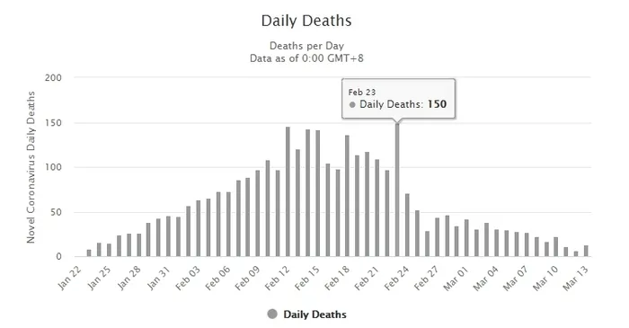 İtalya'da bir gündeki bu artış, virüsün ortaya çıktığı Çin'i bile geride bıraktı. Her ne kadar bazı kesimler Pekin yönetiminin gerçek rakamları açıklamadığını iddia etse de, resmi açıklamalar baz alındığında; Çin'de virüsün ortaya çıktığı ilk günden bu güne kadar geçen zamanda, bir günde en fazla ölümün olduğu tarih 23 Şubat 2020. Bu tarihte Çin'de virüs salgını sebebiyle sadece 150 kişi hayatını kaybetti.